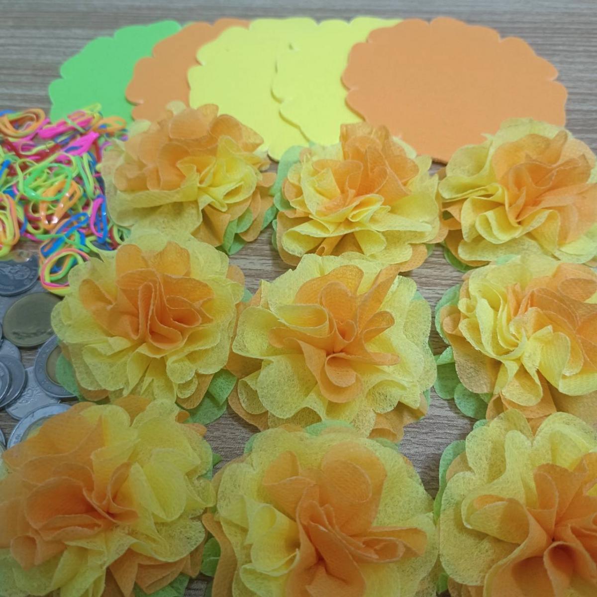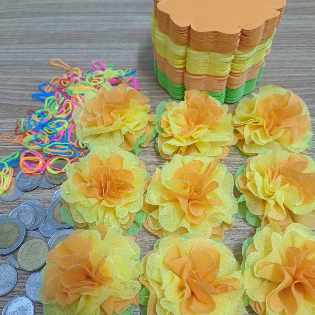 +ขอบโบว์ ดอกดาวเรืองฝรั่ง (เขียว ส้ม เหลือง ส้ม เหลือง)