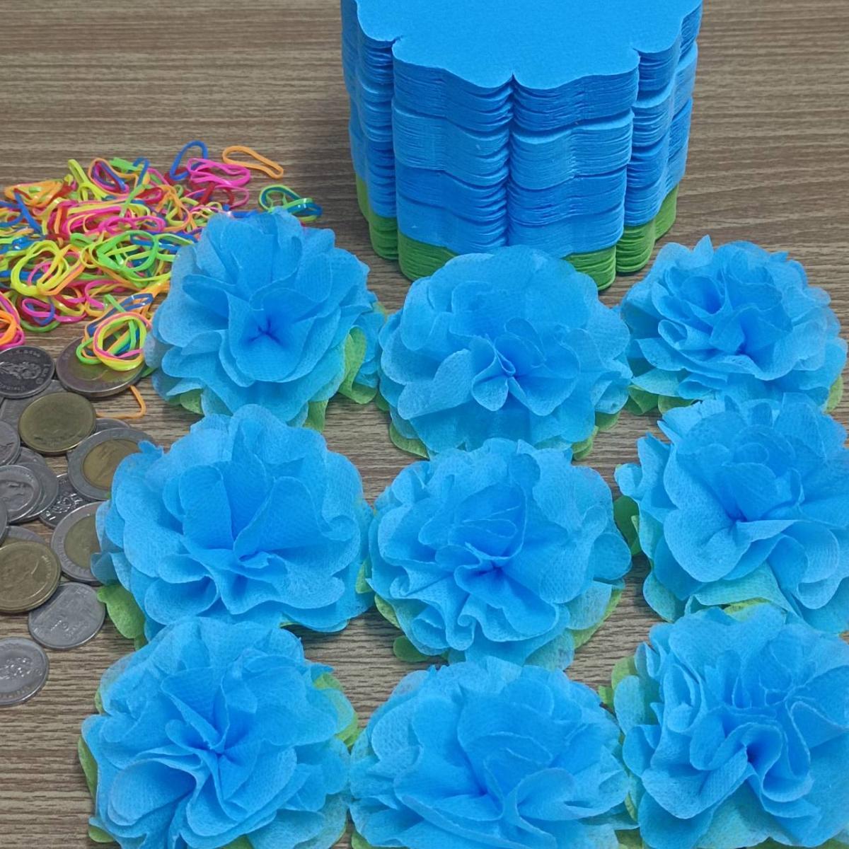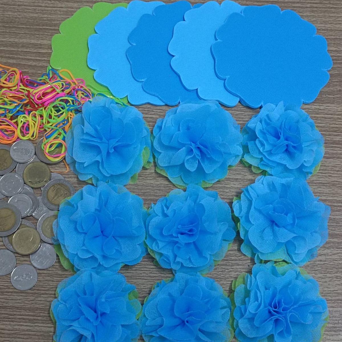 +ขอบโบว์ ดอกไฮเดรนเยียฟ้า ( เขียว ฟ้า ฟ้าพาสเทล ฟ้า ฟ้าพาสเทล)