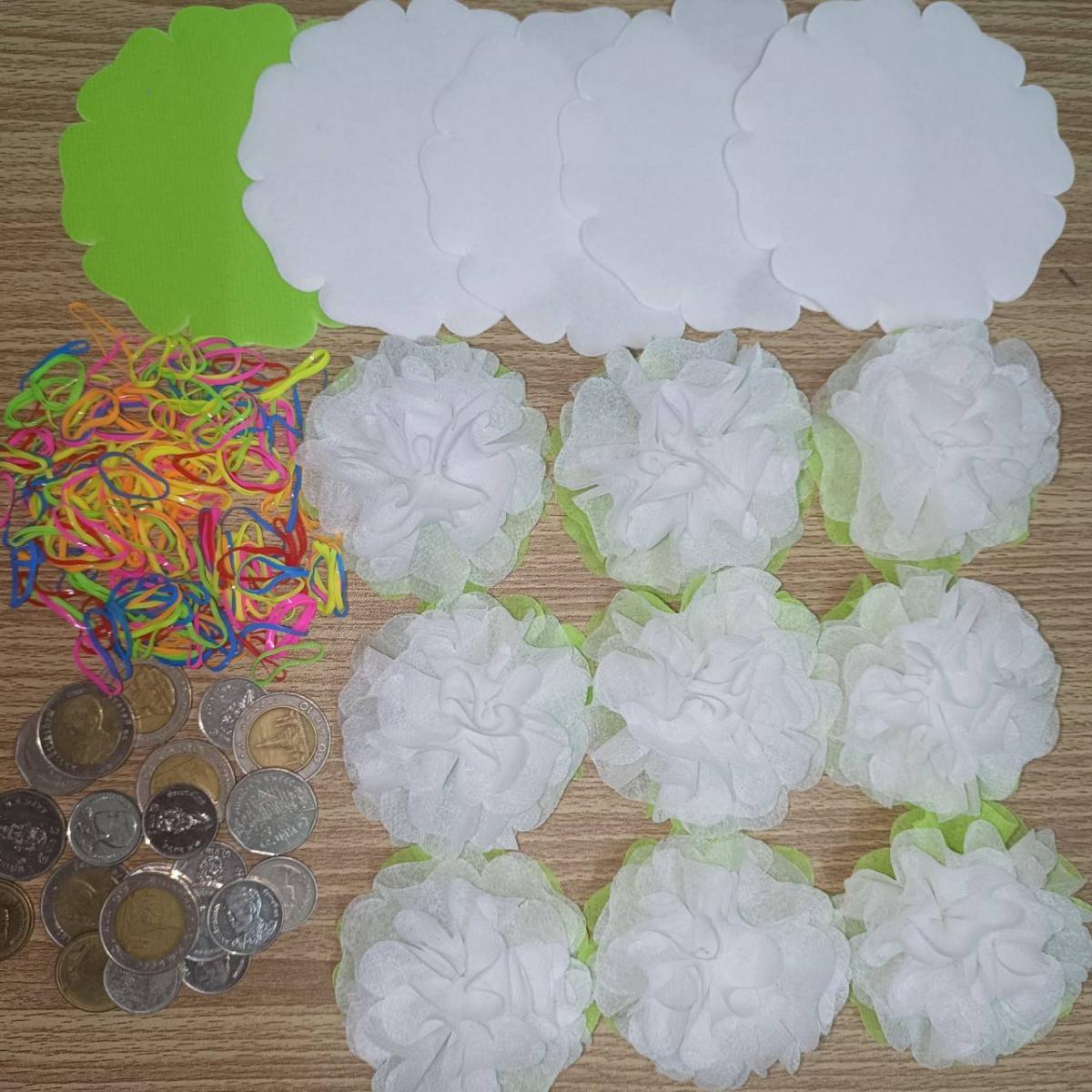 +ขอบโบว์ ดอกมะลิ ( เขียว ขาว ขาว ขาว ขาว )