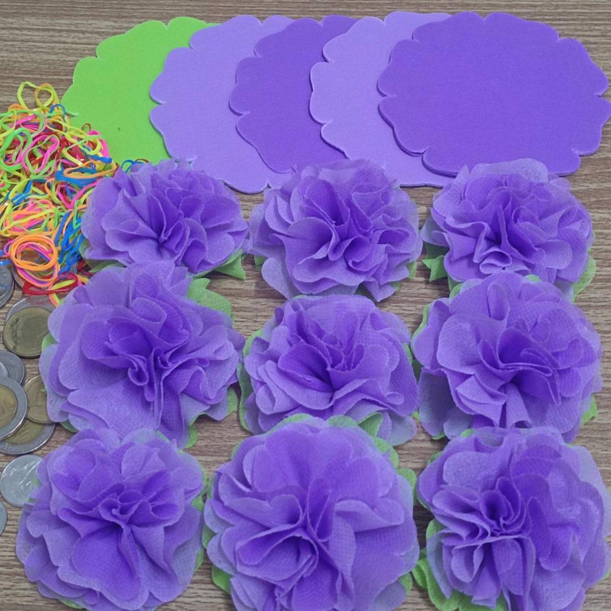 +ขอบโบว์ ดอกไฮเดรนเยีย (เขียว ม่วงพาสเทล ม่วง ม่วงพาสเทล ม่วง)